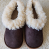 Pantufas em cor castanho, produzidos com um tecido de veludo muito confortável.
